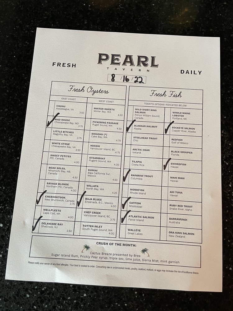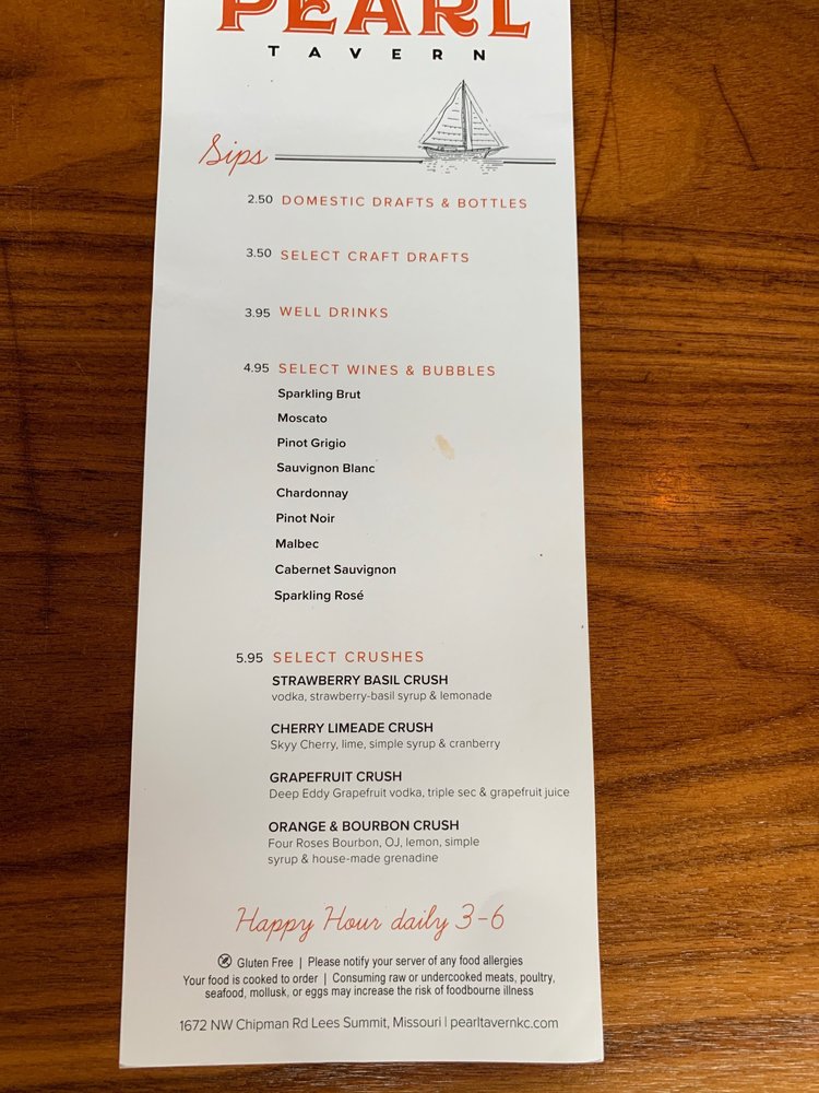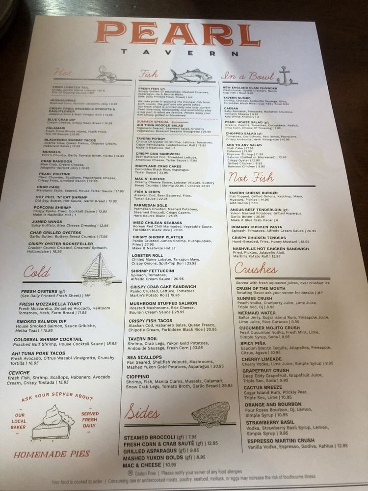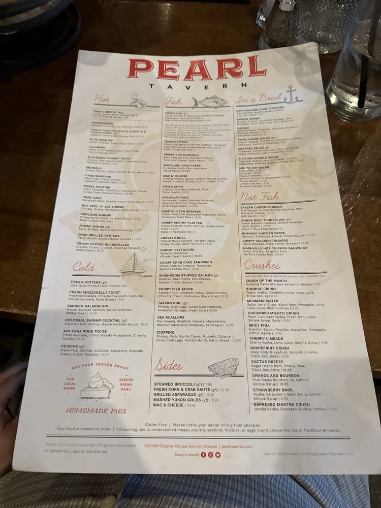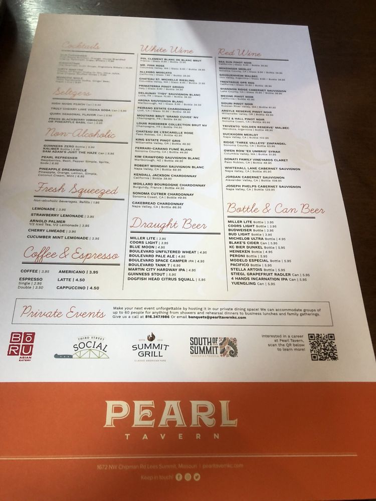 Introducing Pearl Tavern: a trendy New American seafood restaurant located in Lee's Summit, MO. Pearl Tavern offers a variety of vegan and vegetarian options, making it a great choice for all dietary preferences. The menu features fresh and flavorful dishes like Ahi Tuna Tacos, Ceviche, Blackened Shrimp Tacos, and Crab Cakes. Noteworthy items include the Blue Crab Dip and Fried Brussel Sprouts. The restaurant also provides a cozy ambiance with outdoor seating and free Wi-Fi, perfect for enjoying a meal with friends or family. With attentive waiter service, a full bar, and happy hour specials, Pearl Tavern promises a delightful dining experience. Don't miss out on trying their signature dishes and savoring the flavors of the sea.